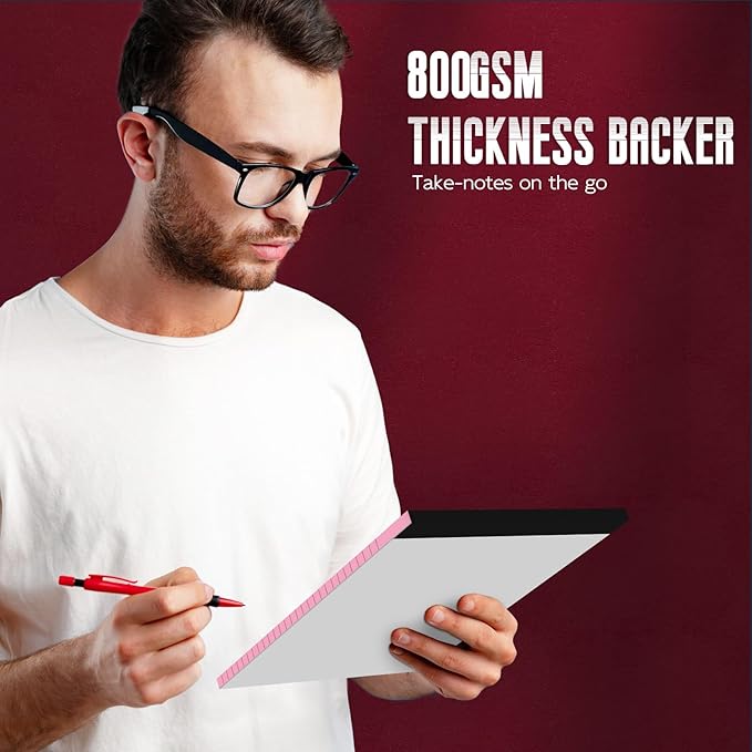 - 【Premium Legal Pads】The pink legal pad 8.5 x 11 is made of 70gsm paper, which is thicker than a typical writing notepad. Legal note pads 8.5 x 11 letter lined paper pads has black lines and double red margin lines on left, Sturdy white cardboard back allows you to hold the pad in your hand and write smoothly on the go, enjoy a smooth writing experience in everyday paper use and prevent ink from being left on the back or indented writing on the next sheet of paper. Suitable for a variety of pens.
