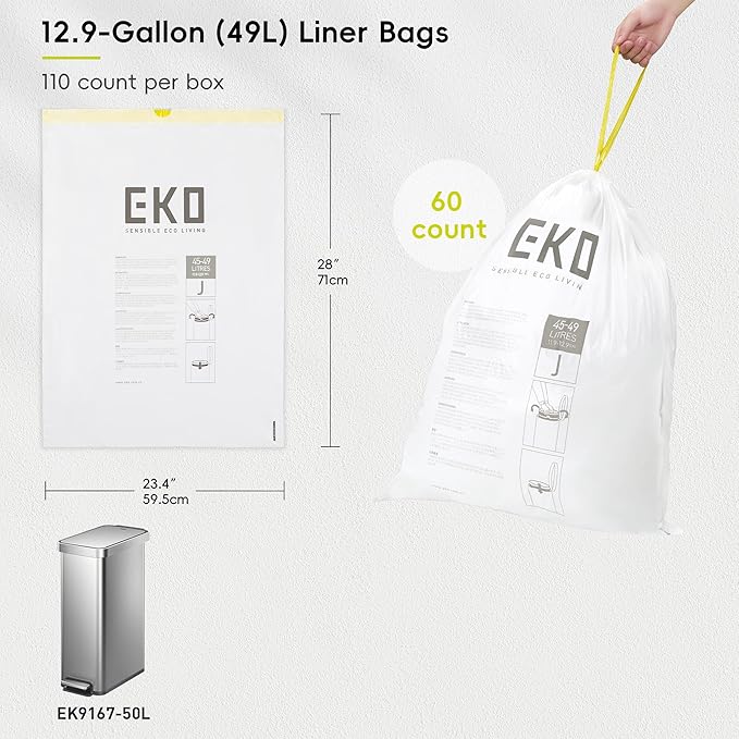 - Versatile Compatibility – Designed for EKO 12.9-gallon trash cans, but also fits a wide range of cans from 12 to 13 gallons (45-49L), making them a versatile option for any kitchen or household