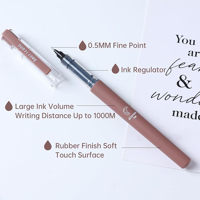 - Liquid Rollerball Ink Pens: free-flowing liquid ink system, cute coffee theme, smooth writing, no skip, smudge-free, water-resistant and quick-drying