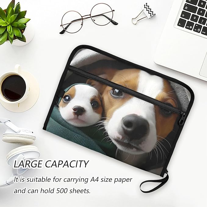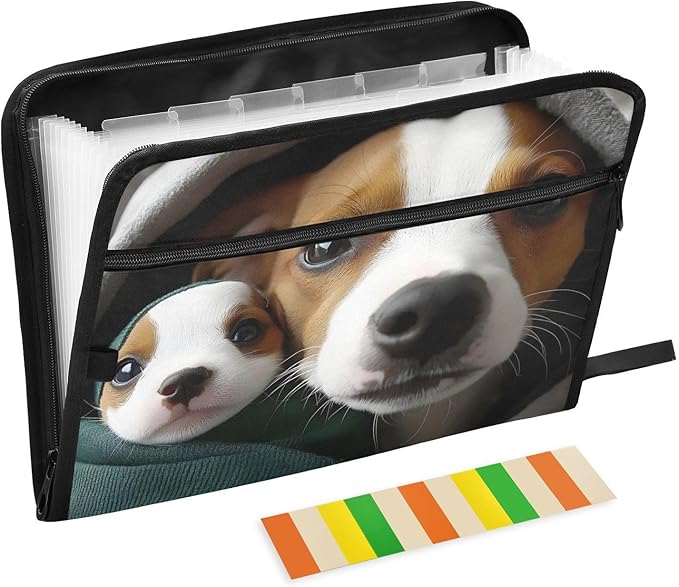 Expandable Filing Folder Cute Dogs Blanket, 13 Pockets A4 Letter Size Document Organizer with Sticky Labels for Office, School, Boys, Girls