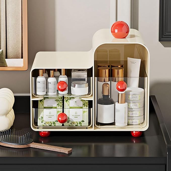 - Equipped with removable layers and smooth sliding drawers, this organiser ensures quick access to essential while maintaining a simple aesthetic for neatly countertops and desks.